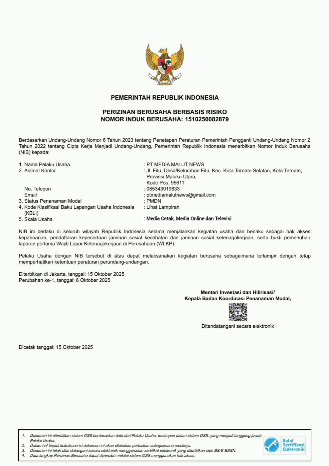 Dalam Melaksanakan Tugasnya, Kaperwil, Kabiro, Wartawan Liputan dan Tim Investigasi dibekali Kartu Tanda Pengenal Resmi & Namanya Tercantum di BOX Redaksi. Apabila Ada Yang Mencurigakan, Silahkan Hubungi Kantor Redaksi Via Chat Whats App +62 853-4391-9833