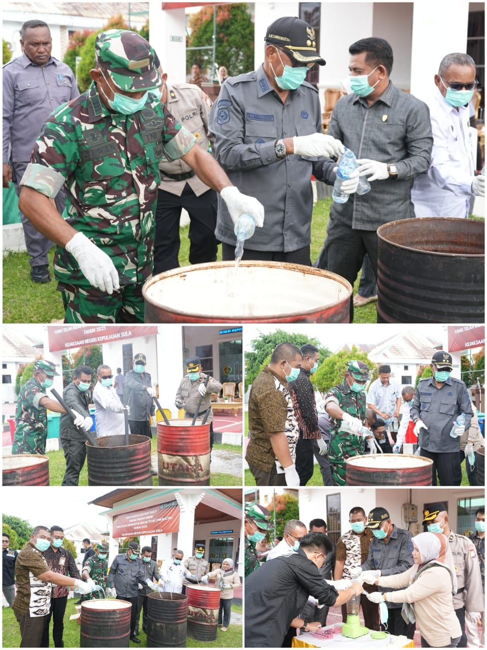 KEPULAUAN SULA — Wakil Bupati Kepulauan Sula, Ir. H. Saleh Marasabessy, M.Si, didampingi unsur Forum Koordinasi Pimpinan Daerah (Forkopimda) Kabupaten Kepulauan Sula, menghadiri kegiatan Pemusnahan Barang Bukti yang digelar oleh Kejaksaan Negeri Kepulauan Sula, Jumat (19/12/2025).