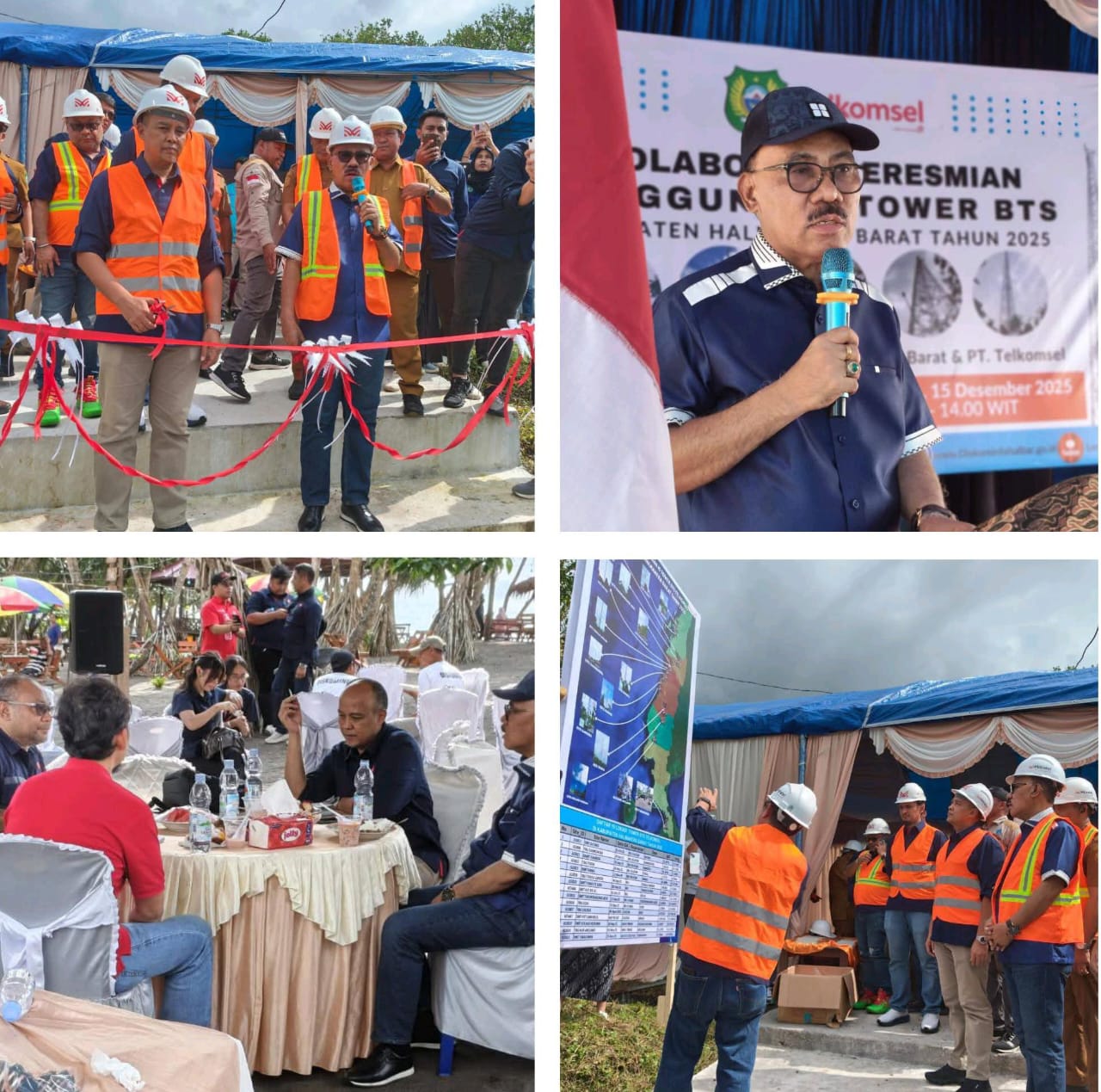 HALMAHERA BARAT — Bupati Halmahera Barat, James Uang, bersama Vice President Area Network Operations Telkomsel Pamasuka, Anky Arief Priyagung, secara resmi meresmikan pengoperasian 15 Tower Base Transceiver Station (BTS) di Kabupaten Halmahera Barat. Kegiatan peresmian dipusatkan di Desa Bataka, Kecamatan Ibu Selatan, (15/12/2025).